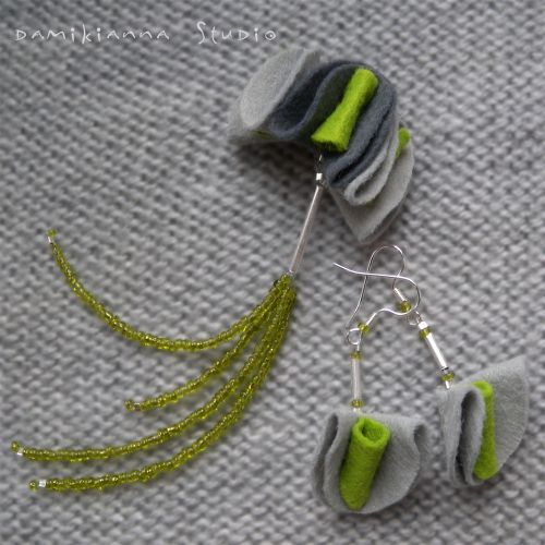 Broszka z kolczykami - Popielaty Kwiat RIMANIS