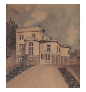Wisła 1960 r.- dom wczasowy, obraz wykonany kredką