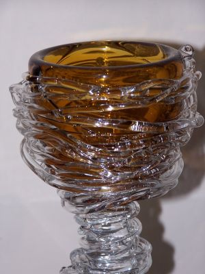 żółta czara opleciona białym szkłem